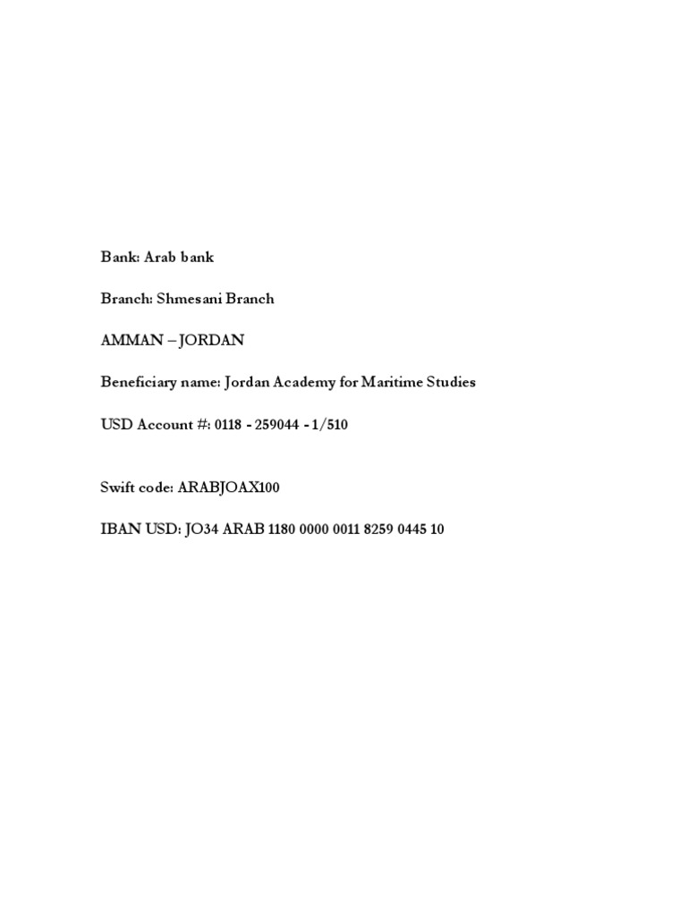 Arab Bank will not be held liable for any damage or loss of any nature resulting directly or indirectly from entering an incorrect or an invalid account number. For additional help contact us on +962 6 4600900