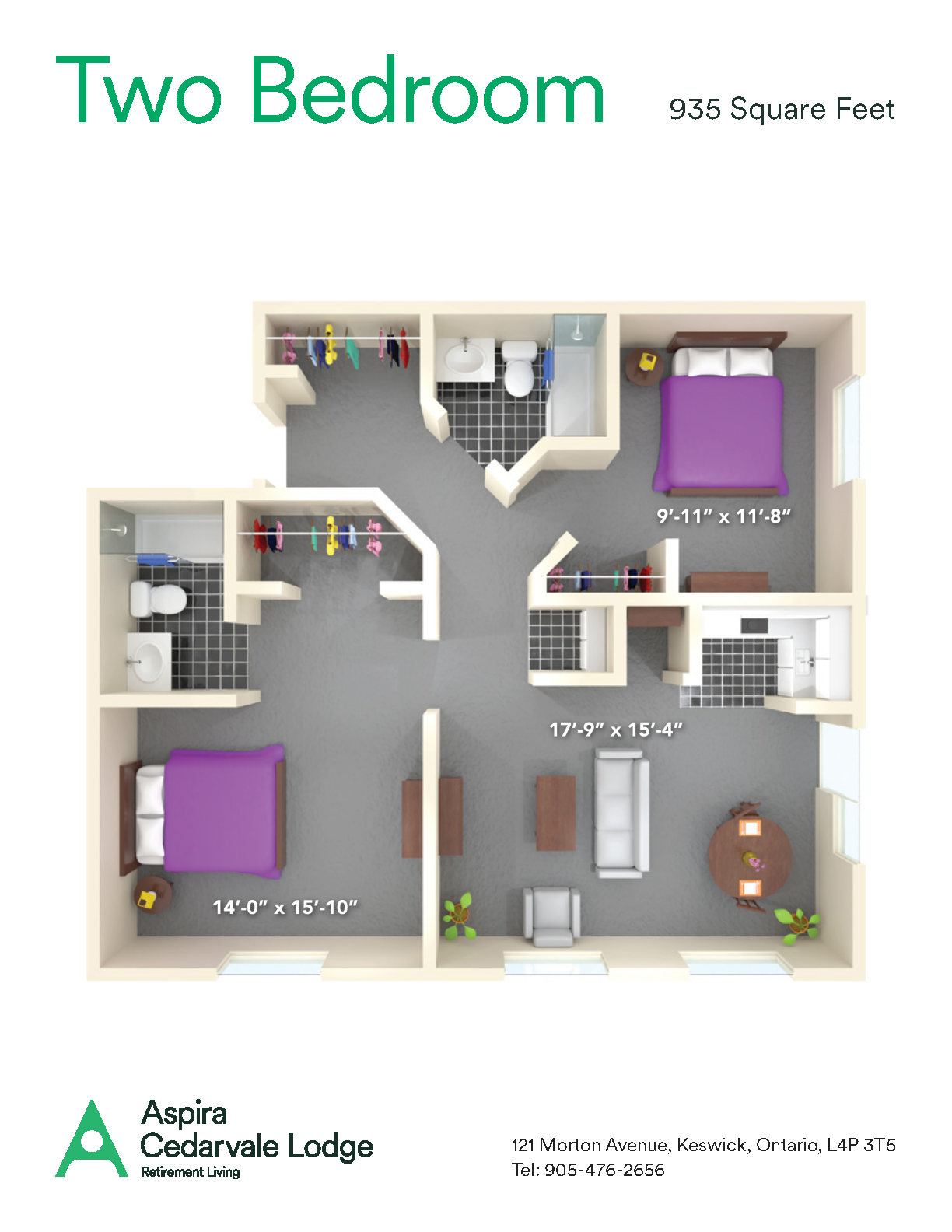Independent Living double occupancy surcharge is $873/month.. Aspira Cedarvale Lodge Retirement Living 121 Morton Avenue, Keswick, ON L4P 3T5 905-476-2656. Our Locations. Find your Local Community; Living Options. Seniors Apartments; Independent Living; Assisted Living; Respite Care;