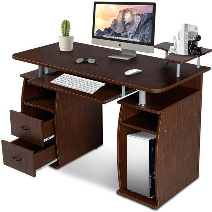 Giantex bureau informatique table de bureau en mdf pour ordinateur multirangements avec