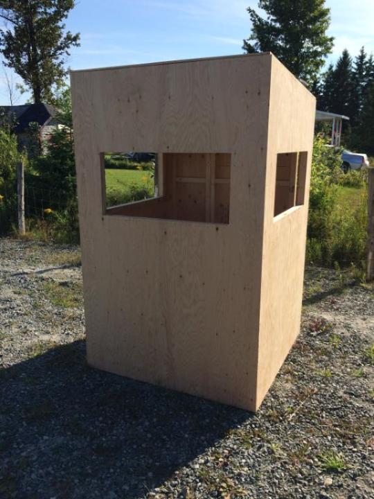 Étapes de construction. Base. Murs. Toit. Mesurez et coupez les pièces du carré principal du plancher, puis assemblez-les. Assurez-vous que l'espace soit assez grand pour le nombre de chasseurs qui utiliseront la cache. Au besoin, ajustez les dimensions et n'oubliez pas de renforcer la structure si nécessaire.