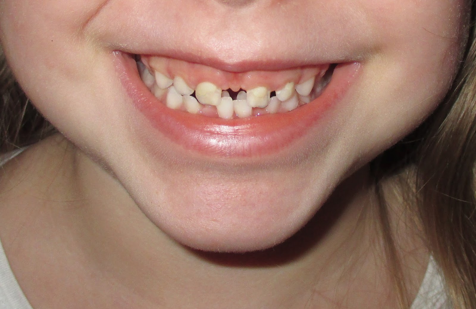 La dent définitive pousse avec du retard. La dent définitive pousse derrière la dent de lait. La dent définitive est bloquée et ne peut pas sortir normalement. Des extractions sélectives sont parfois conseillées afin de libérer de la place pour la poussée des dents définitives et orienter leurs positions.