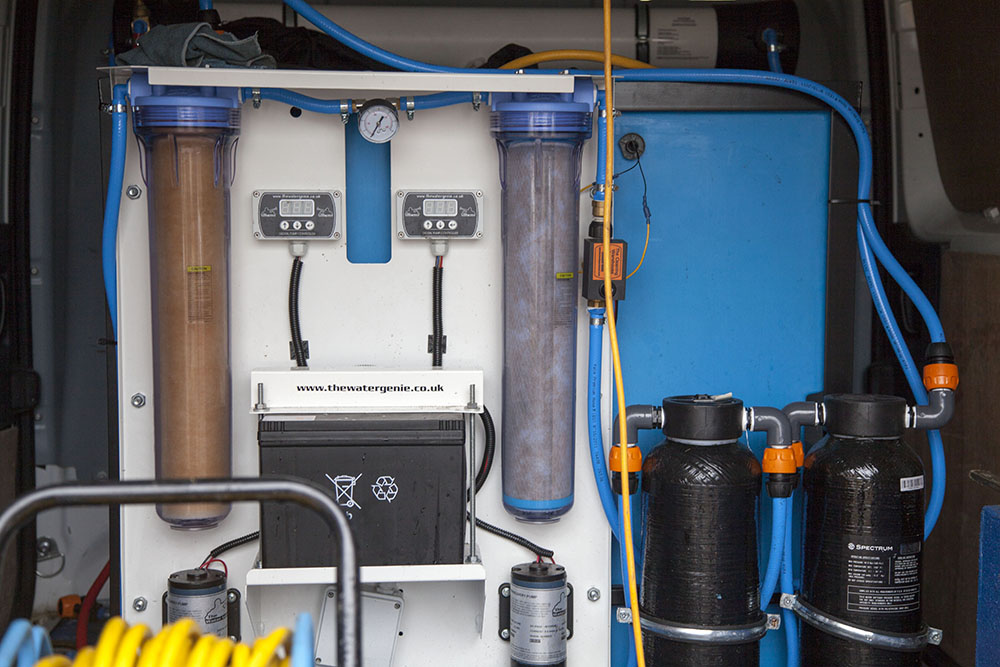This is done by running the tap water through a water purfication system, then through a water fed pole (WFP) and brush to clean the window. The brush scrubs the contaminants from the glass, then the purified water rinses all the dirt and grime away, and leaves the windows spot free. Let's look at what a water fed pole system consists of and.