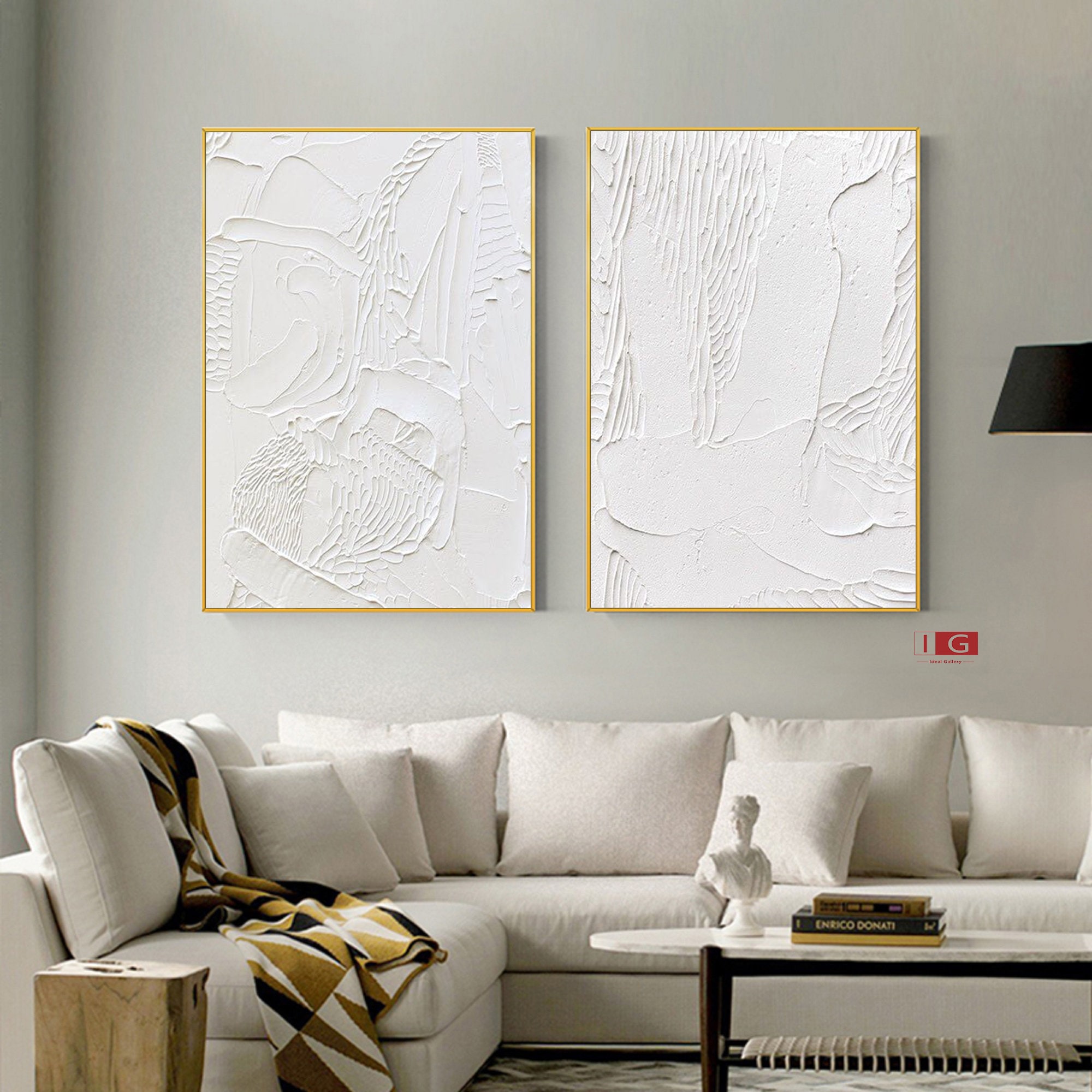 White Textured wall art white Abstract art Set of 2 white Etsy